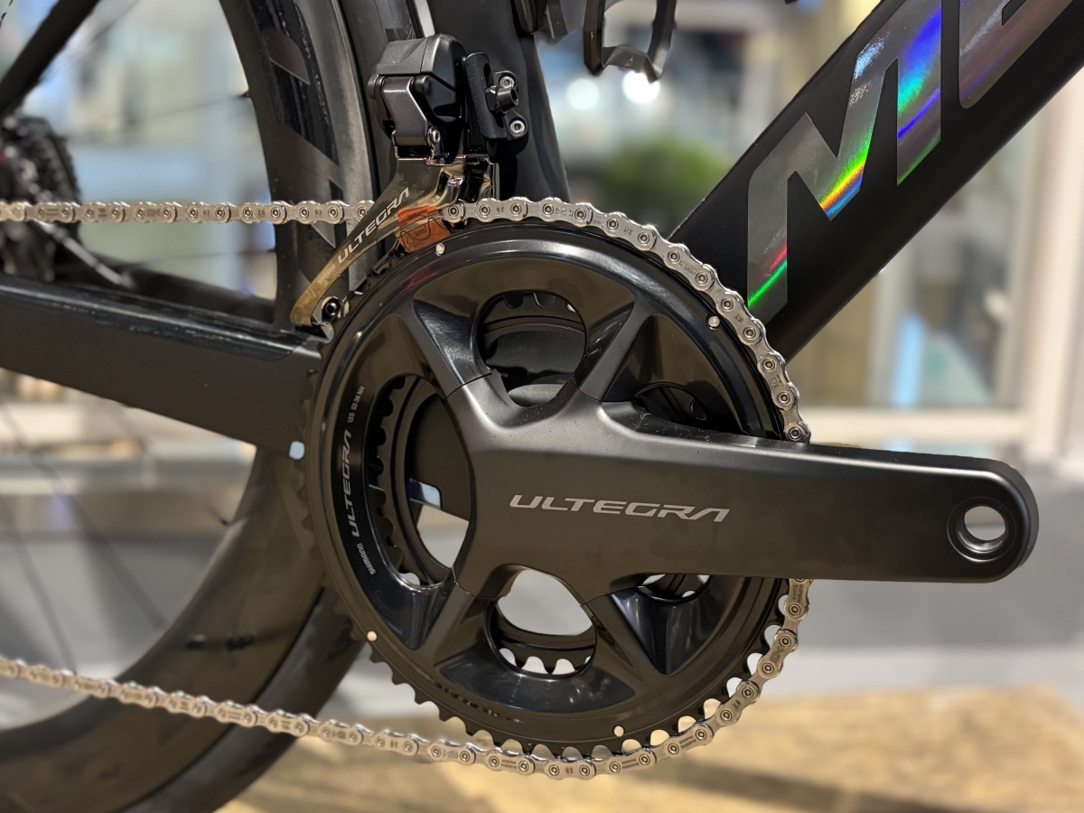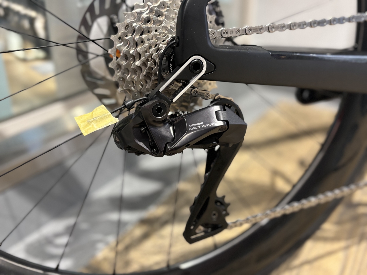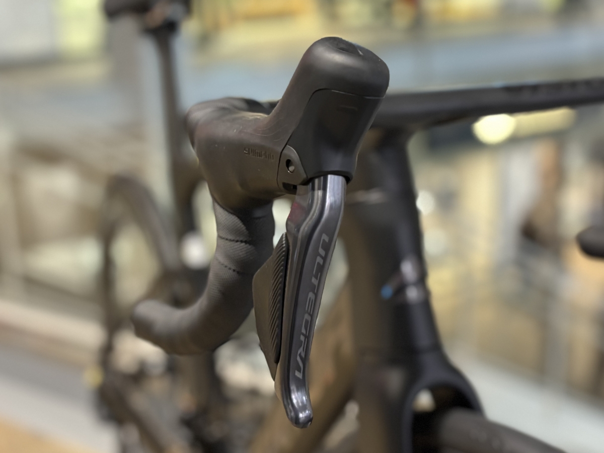 コンポーネントにはSHIMANOのR8100系 Ultegraの2×12速電動変速を採用。