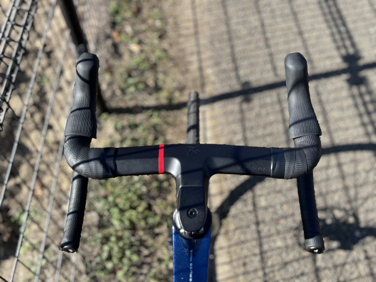 下ハンドルが25mmフレアしているのでブラケットポジションではエアロポジションを取り、スプリントではもがくといった使い分けがしやすくなってました。