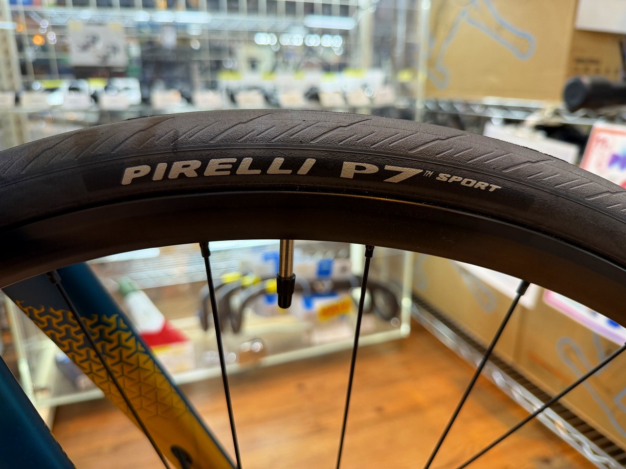 タイヤには700×28cのP7、サドルにはprologoとコラボのオリジナルデザインの物を採用。