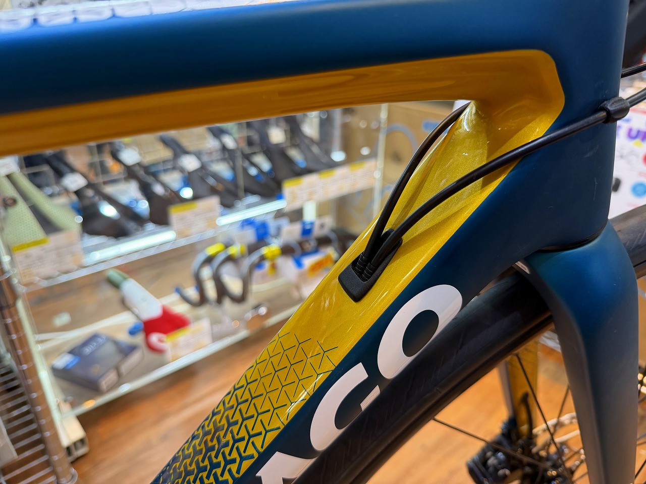 機械式105がコンポーネントに採用されているためケーブルルーティングが異なり、シフトワイヤーはフレームからの内装となります。