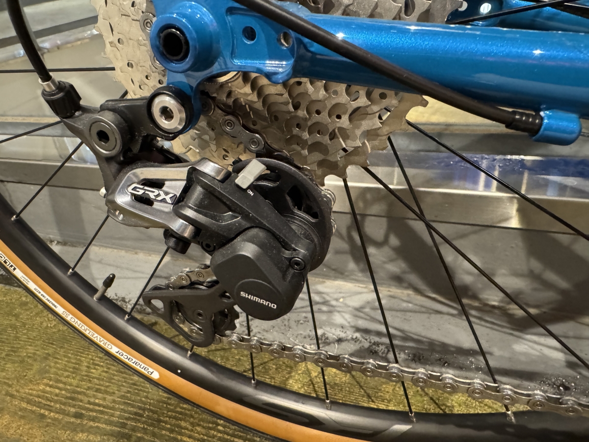 コンポーネントにはSHIMANOのグラベル系コンポーネントのGRX600 1×11速のフロントシングル仕様です。