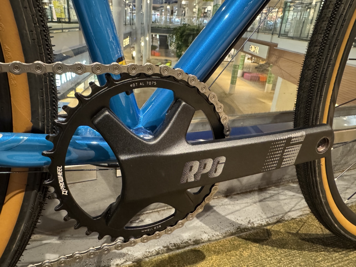グラベル系のコンポーネントなので、ナローワイドのチェーンリングでチェーン暴れ防止のスタビライザーも搭載ですね。