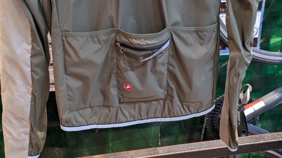 外見としては一番特徴的な部分ではないでしょうか。夏物だと最近は襟ナシのモデルもかなり増えてきましたが、冬物は首元まで襟があるものがほとんど。カステリとしては乗車時に首元のファスナーを開けるならそもそも失くしてしまえという考えみたいです。前面からの防風性とジャージ自体の保温性が高いので逆に首元から空気が入ることで暑くなりすぎないような設計になっています。ただ、走り始めは首元が冷えると思うのでネックウォーマーを併用するのがオススメだと思います!