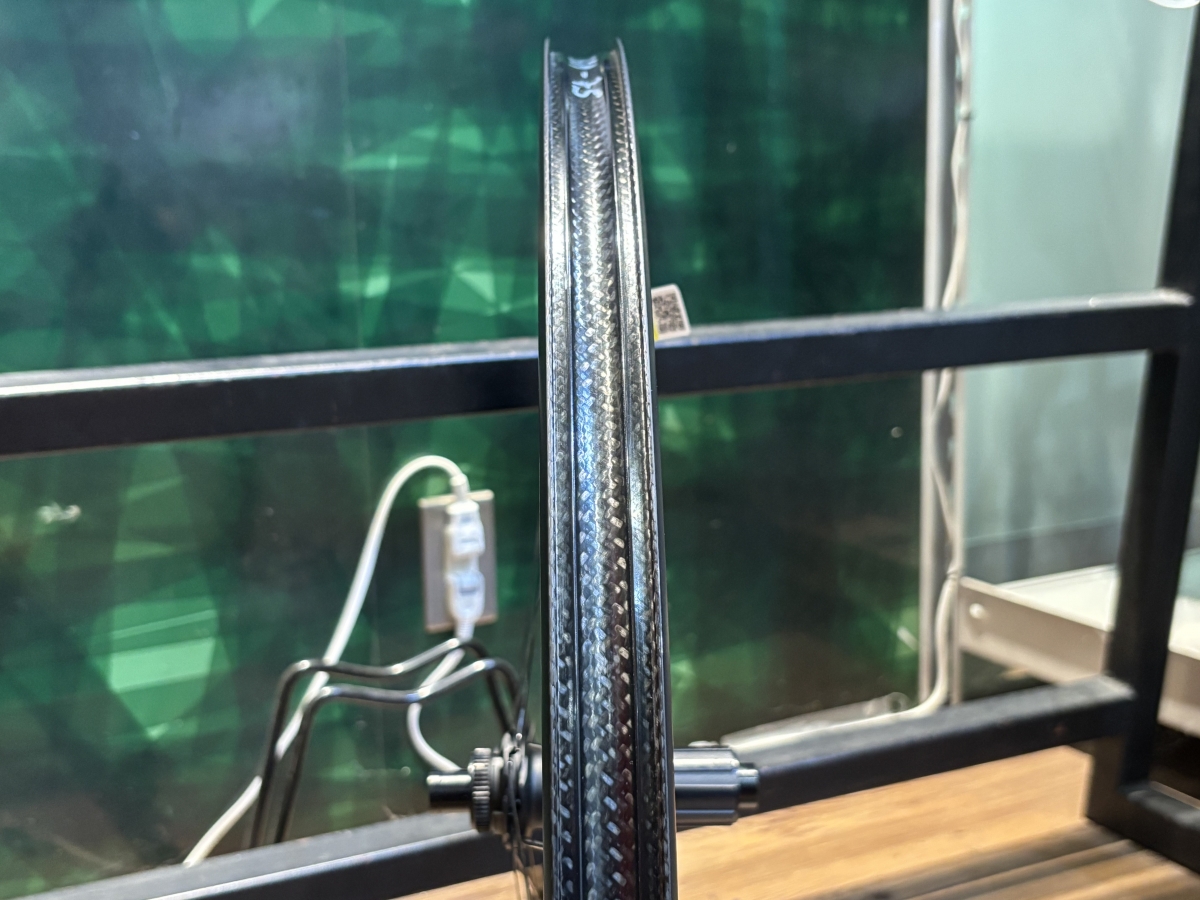 2025年にモデルチェンジを果たした新型のCOSMIC SLRはリム内幅を19mmから23mmへ広げることによって装着したタイヤの断面形状が丸みを帯びた形状になり