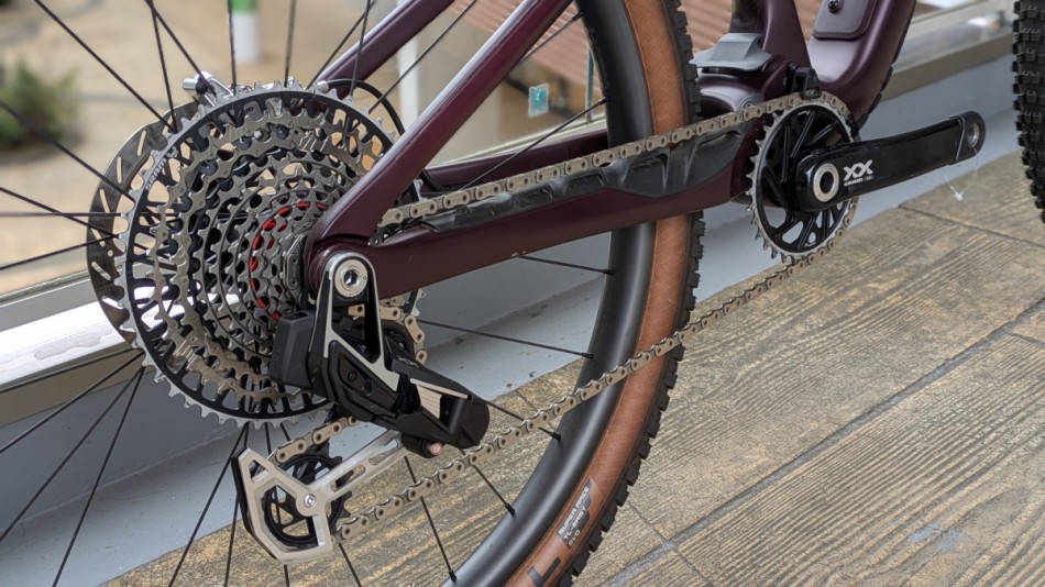 コンポーネントはSRAMのXX Eagle AXSが装備されています。スラムのMTB用のイーグルトランスミッションというグレードで、シンプルな構造による堅牢性と電動変速による素早いシフトチェンジを実現したコンポーネントになります。