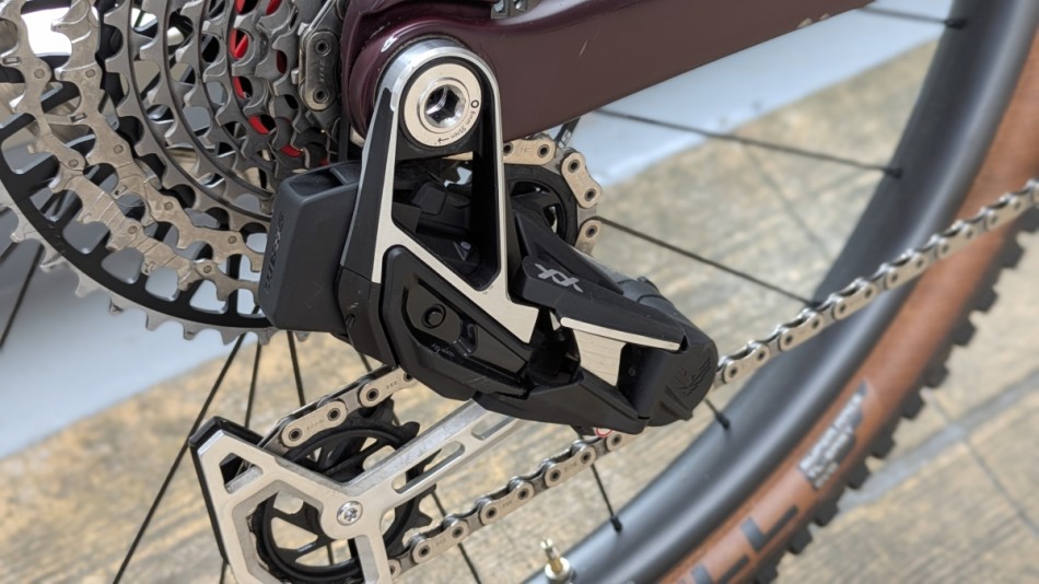 取り付けは近年対応の車体も増えてきた「ユニバーサルディレーラーハンガー(UDH)」エンド部分に直接取り付ける形になっています。これによって外部から衝撃を受ける可能性の高いオフロード走行においてハンガーが曲がってしまうというトラブルなどを避けることが出来ます。このコンポーネントがリリースされた時のプロモーション写真にはRDの上に人が立っている写真が使われておりこれを見たときは衝撃でした笑