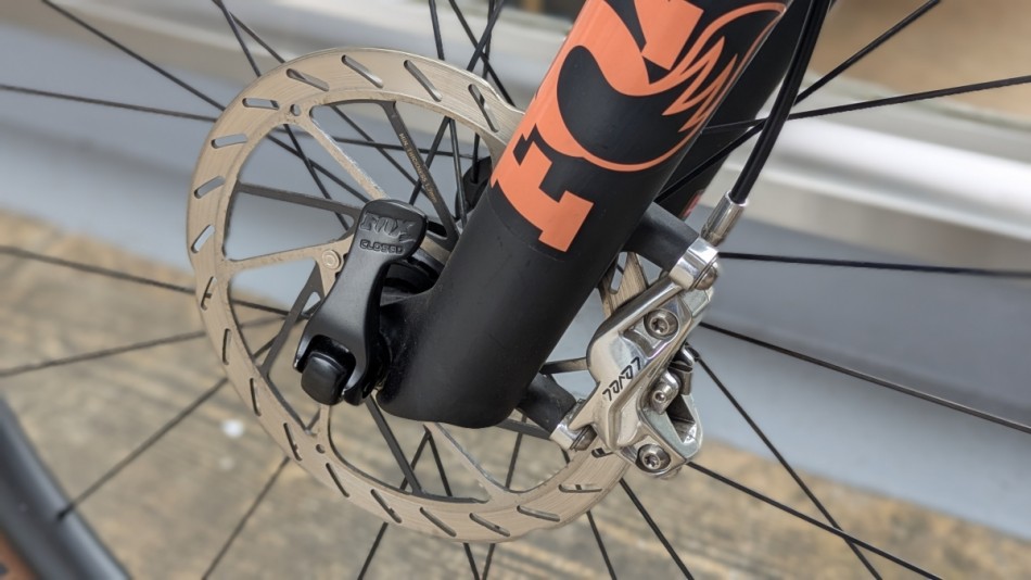 サスペンションは前後ともFOX Racingshoxを採用しています。トラベル量は前後140mmでトレイルバイクらしいセッティングになっています。