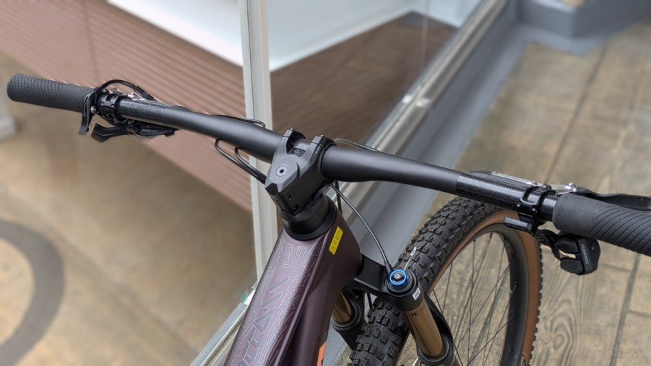 ハンドルにもカーボンハンドルが装着されていて、軽量化や乗り心地の向上に繋がっています。