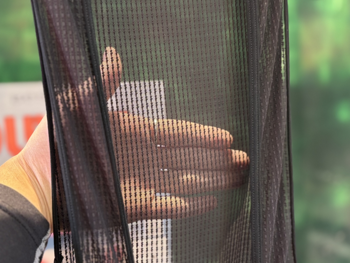 冬用と言っても全て防寒にすると逆に汗を掻いて汗冷えするのでビブストラップの部分は手が透けて見えるほどに薄いメッシュ素材になっています。