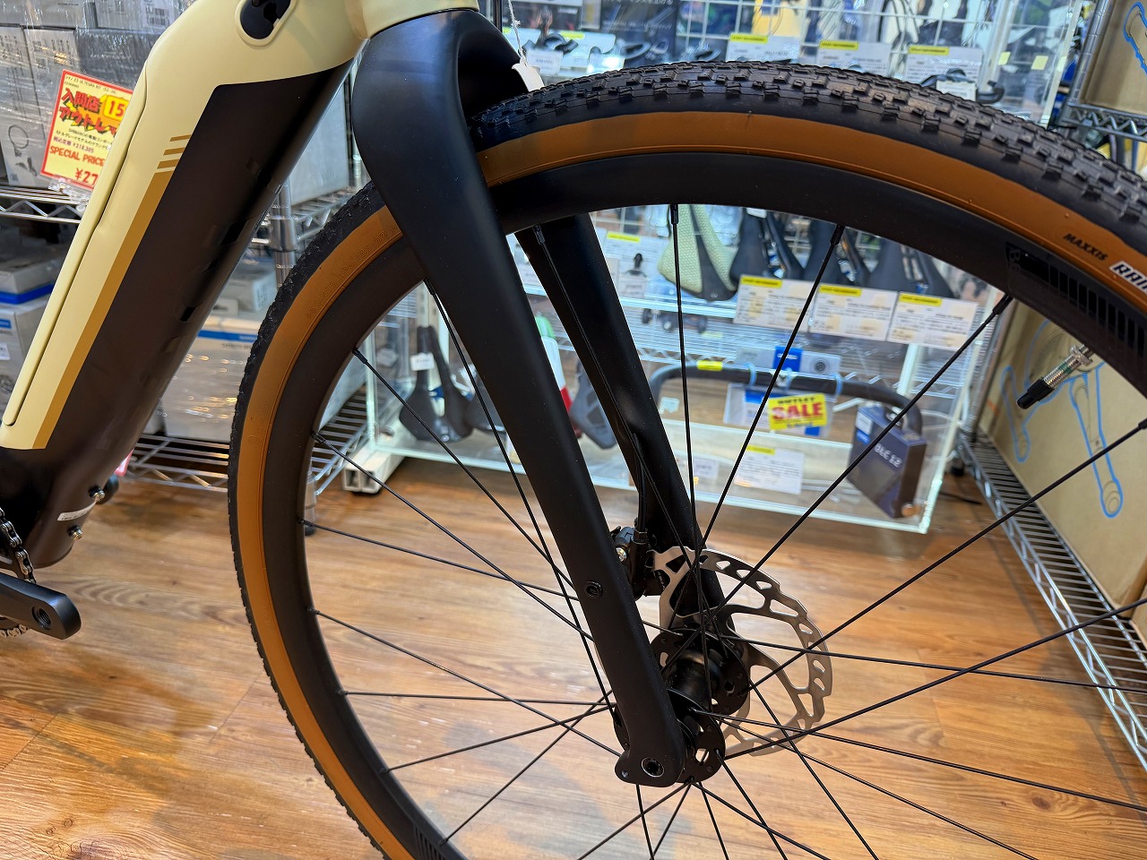 JG1の”G”はGravelを意味しており、アルミフレームに振動吸収性の高いカーボンフォークをアッセンブルした本格仕様です。