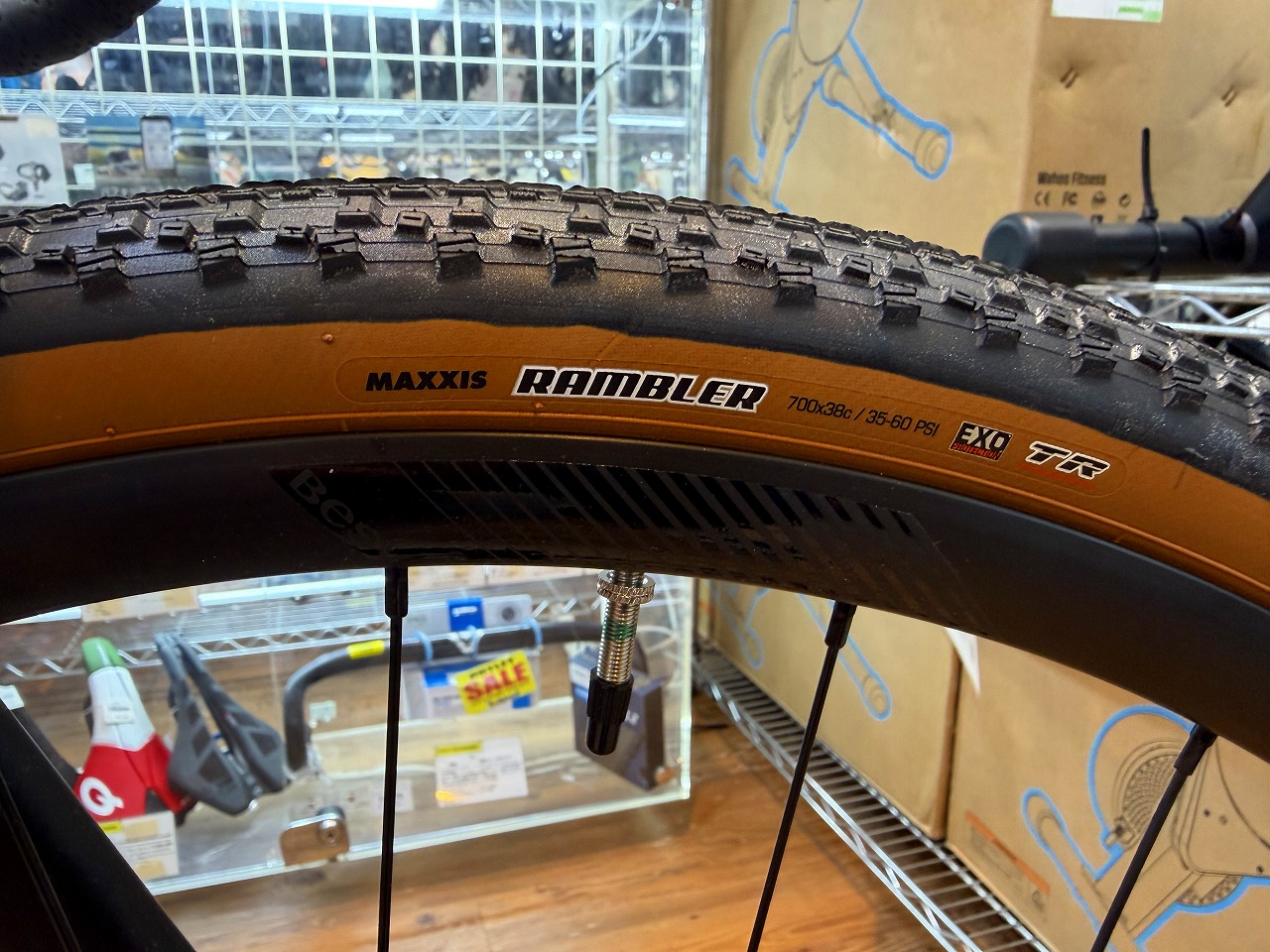 タイヤは700×38Cと太すぎず細すぎずのオンロードを念頭に置いたサイズ感ですね。