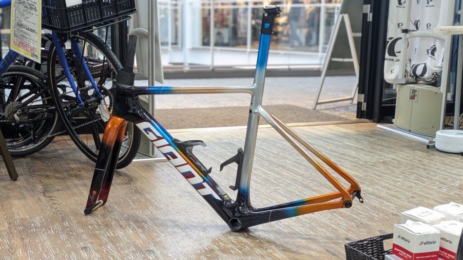 フレームはジャイアントのハイエンド素材”Advanced sl”グレードのカーボンを使用し225gの軽量化に成功しました。