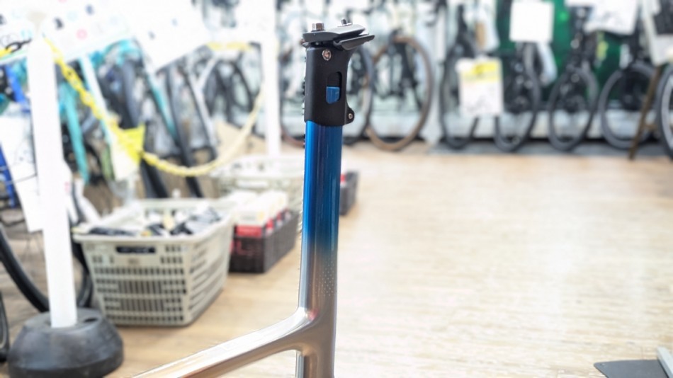 この車体の特徴といえば何といってもISPシートポストでしょう。フレームとシートポストが一体となることで空力・乗り心地・軽量化の面で別体の物よりも優れています。サイズ調整にはカットが必要というデメリットがあるので組む際はかなりの緊張が予想されます笑