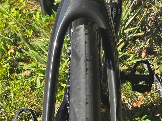フォーク周り、ステー周りはかなりワイドに確保されています。現代ロードはタイヤクリアランスも空力等、性能要因になるのでこれはありがたいですね。