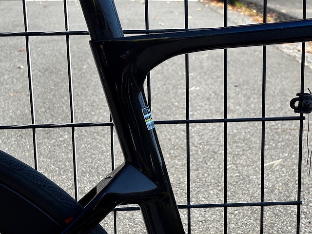 かなり攻めた形状のシートチューブはリアホイールに沿う部分から細くなり、より整流性に優れつつ、上部からピラーにかけては太さがあり、これもまた整流性に努めます。