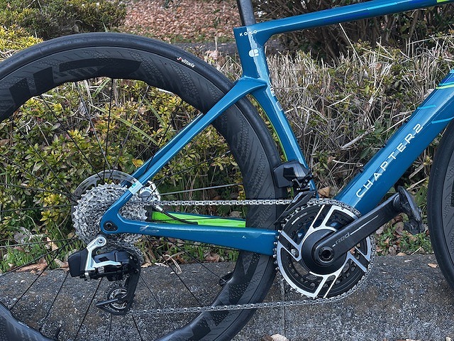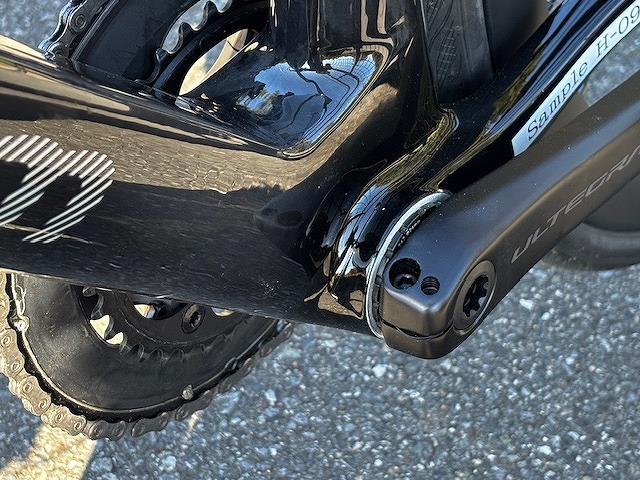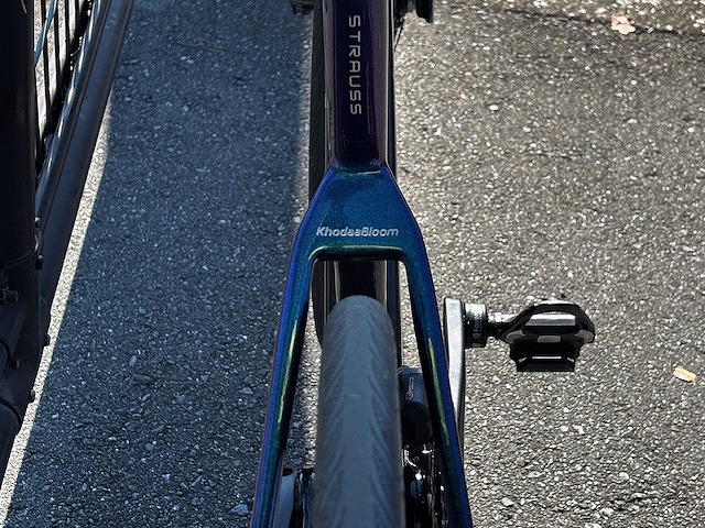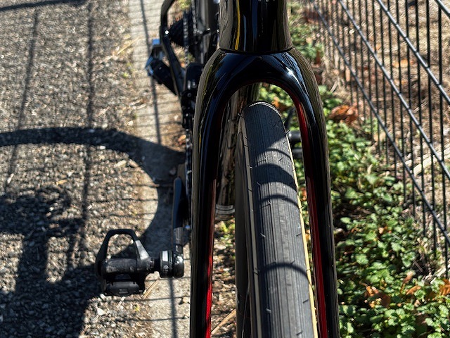 足回りはかなりマッシブ。エアロロードらしい見た目ですが、意外と硬すぎない足当たりでした。カーボンレイアップ等に工夫があるんでしょうか。