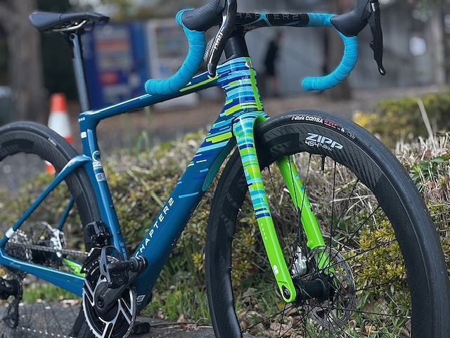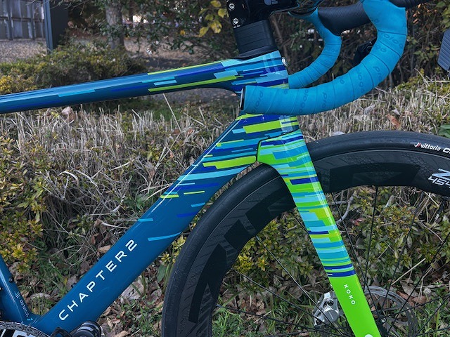 最後はニュージーランドのバイクメーカー”CHAPTER2″のエアロロード”KOKO(ココ)”です。新興メーカーと思われる方も多いかと思いますが前身はヨットやトライアスロンバイク等でカーボン技術に定評のあるニールプライド。現代技術とマオリ部族のトラディショナルな言語や紋様をバイクに落とし込み、唯一無二なバイクを設計しています。
