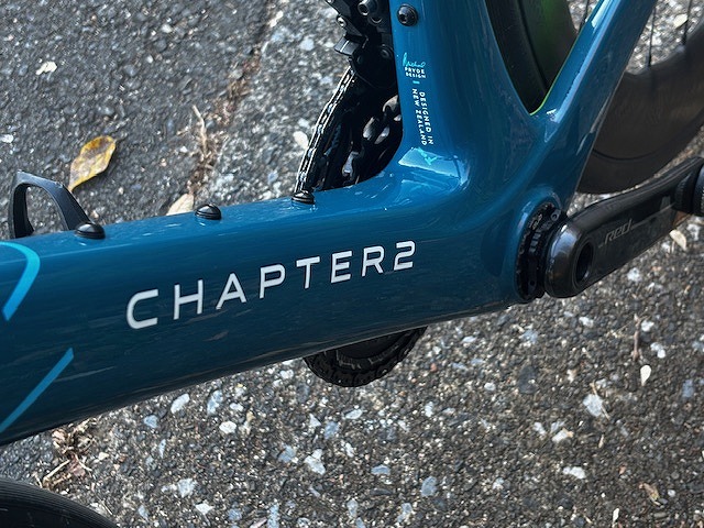 シートピラーは細いパイプです。デュアルポジションシートクランプというこの構成で大きくしなる・しなりが少ないを切り替えられます。道路状況やライダーの好みによって変えられる構成になっており、走り方を制限しないCHAPTER2らしいコンセプトが伺えます。