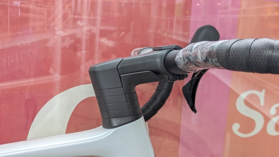 ワイヤー類はほとんど露出がありません!見た目もすっきりして空力性能向上にも一役買っています!ワイヤー類もステム下を通るようにルーティングされているので整備性なども良くなっています!