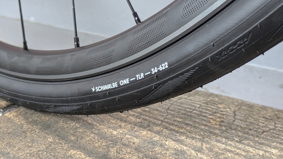 タイヤはシュワルベのワンTLRの34Cが装着されています。完成車の状態ではクリンチャー仕様ですが後々チューブレス化する事でより快適なライドが可能になります!新型になりタイヤクリアランスが38Cまで対応したことで更に快適性を高める事ができるようになりました!