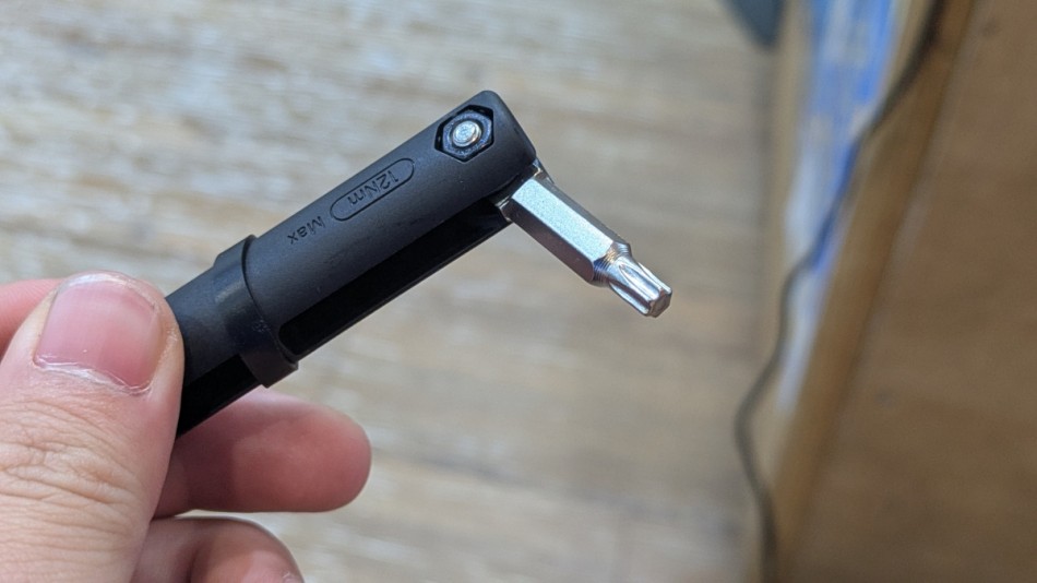 出してみるとこのような工具が入っています。トルクスと六角が一体になっており、基本的に車体のほとんどの箇所の調整などに対応しています!L字にして使用できるので力もかなりかけやすくトラブル時などにも大活躍間違いなしです!