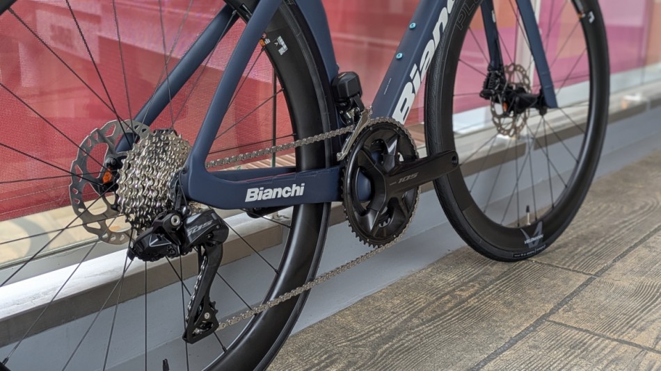 コンポーネントは105Di2で2×12速の電動変速を採用しており、軽やかで確実なシフティングを提供してくれます。