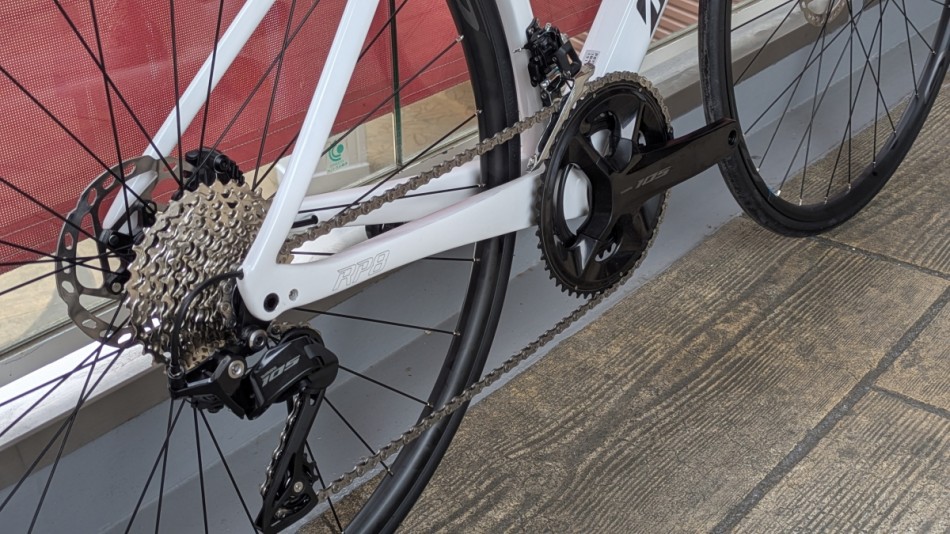 ホイールにはシマノのRSホイールが付属しています。重量自体はそこそこありますが堅牢性には優れたホイールになっています。ホイールアップグレードすることでかなりRP9に肉薄する性能になりそうです!
