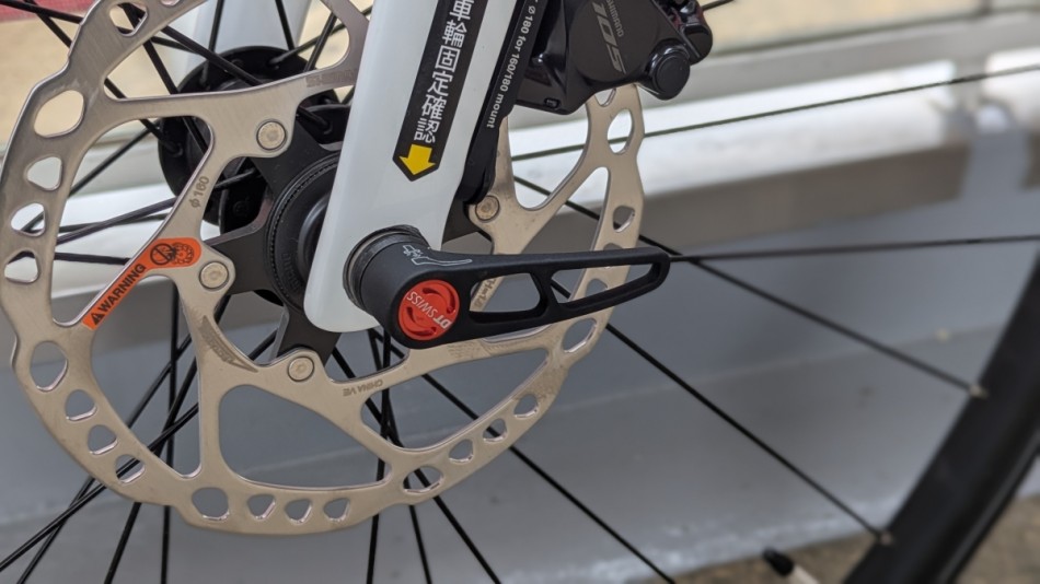 スルーアクスルはDT SWISSのスルーアクスルが標準装備されています!ホイールブランドのパーツらしく作りはかなりしっかりしていて、つまみを引っ張ることで任意の位置でレバー角度を調整できるという機能性も兼ね備えています!