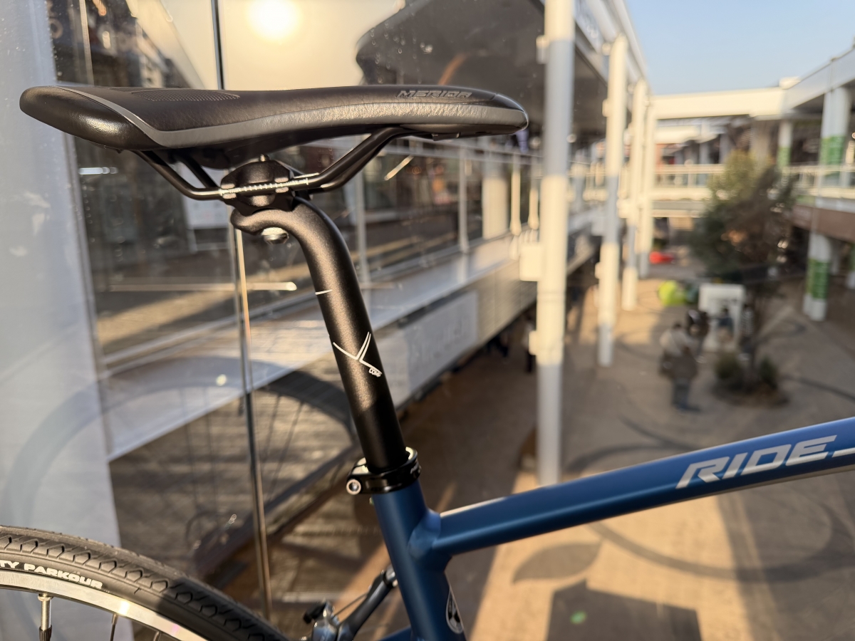比較的柔らかめのサドルが搭載されており、ロングライドでもおしりにやさしいサドルになっています。