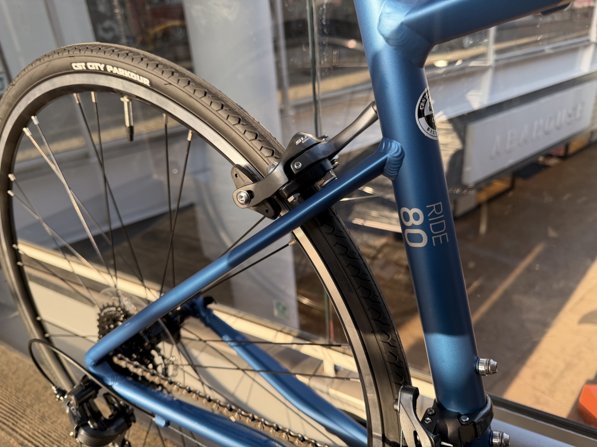 ブレーキはリムブレーキのClarisになっており、十分な制動力を確保しています。