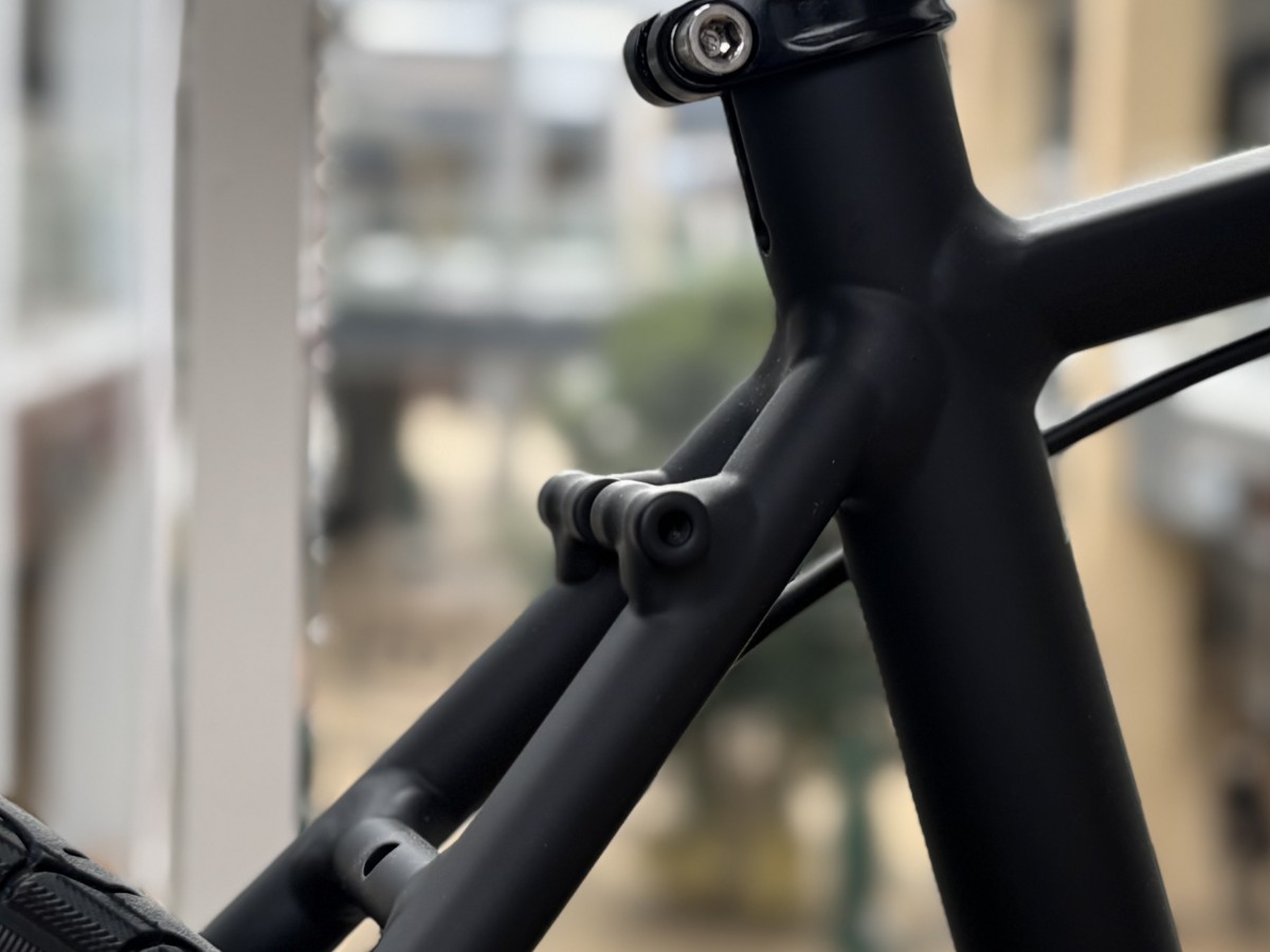 一番の特徴としては胴長短足の体格になりがちな我々に対して、足付き性を高めたり、跨りやすくするためにトップチューブが大きくスローピング(下がっている)していること。
