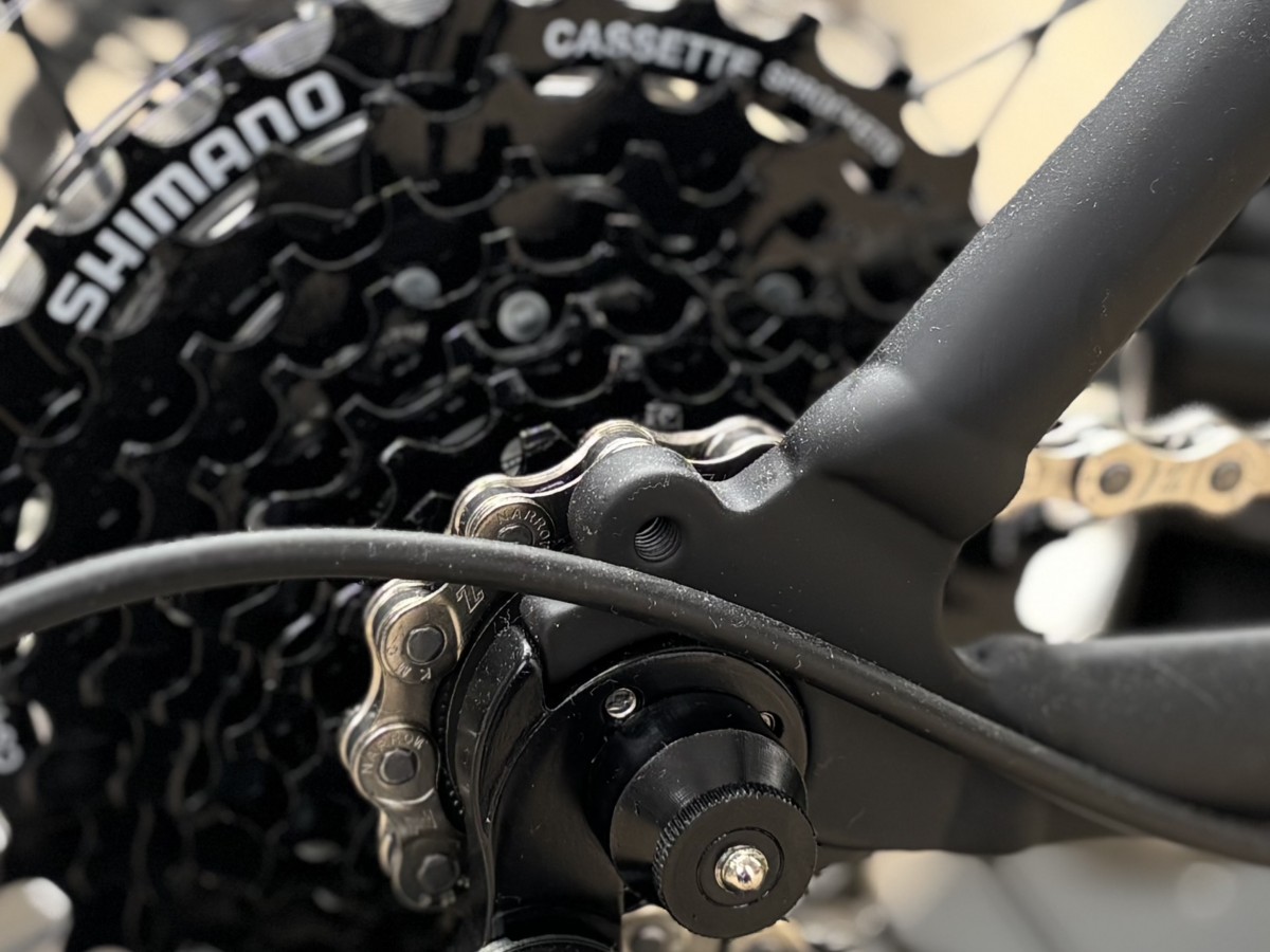 フレームにはキャリアを摂り付けるためのダボ穴が用意されているので荷物の持ち運びがめんどうな方でも後付けすることでその点はクリアできます。