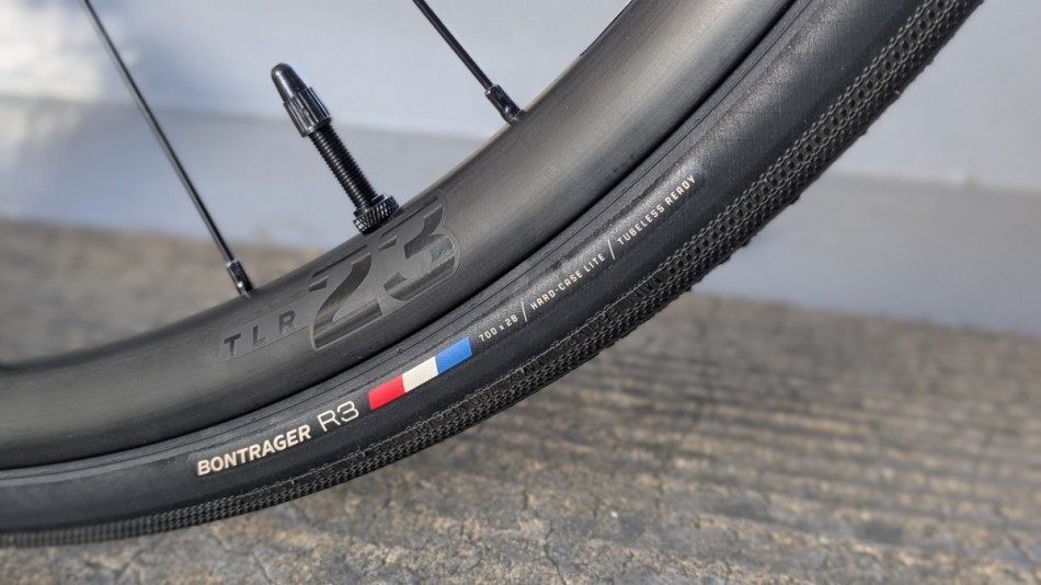 ホイールはコストカットも含めてアルミのモデルを採用。タイヤにはR3 TLRを採用しています。どちらかというとトレーニング向けタイヤですが乗り心地やグリップ力もそこそこ定評があるタイヤです。付属品としてシーラントも付属してくるので、このタイヤでチューブレス化するのも良し、車体購入の際に思い切ってタイヤをアップグレードするのも良いと思います!