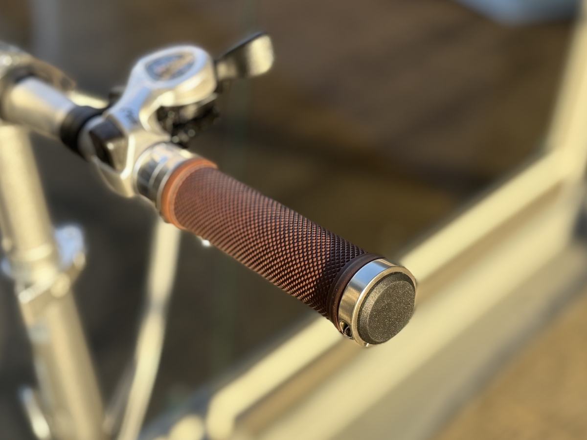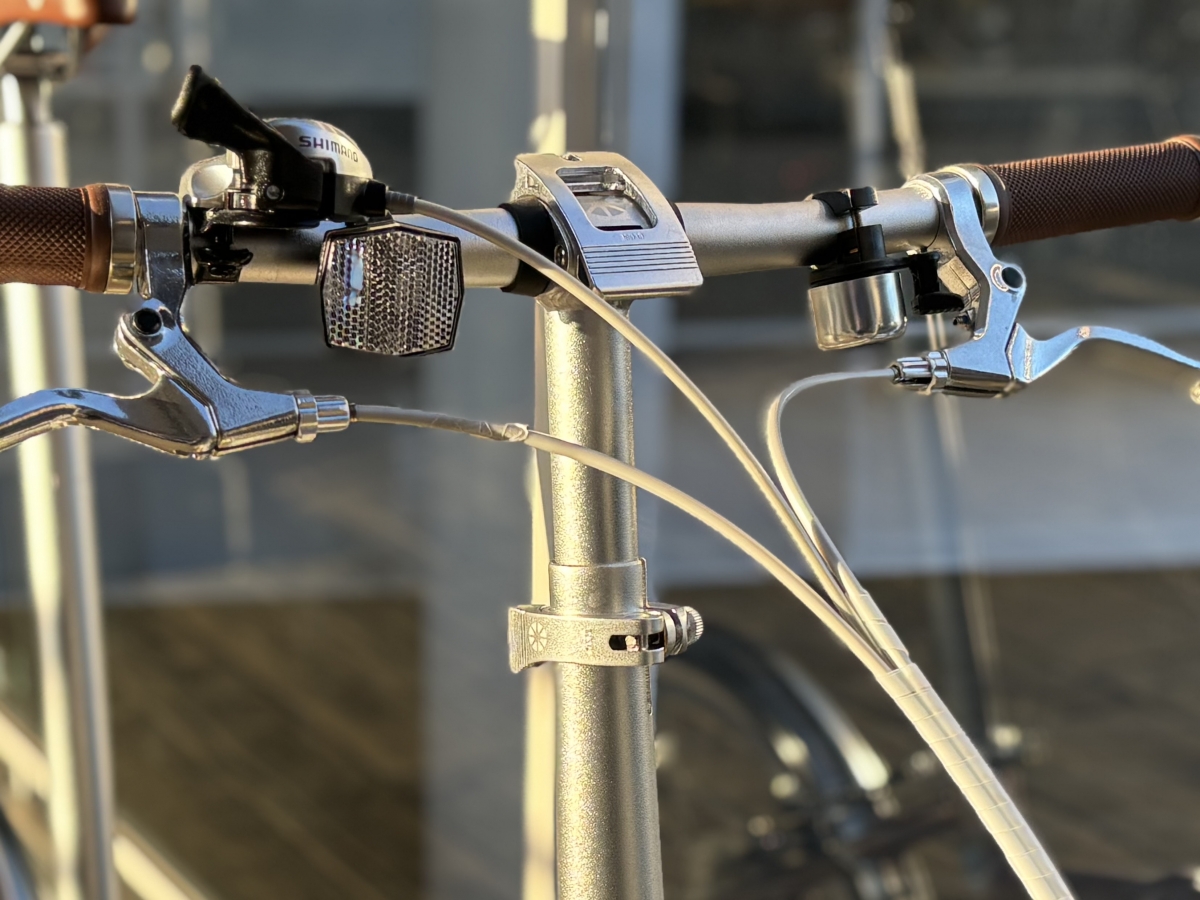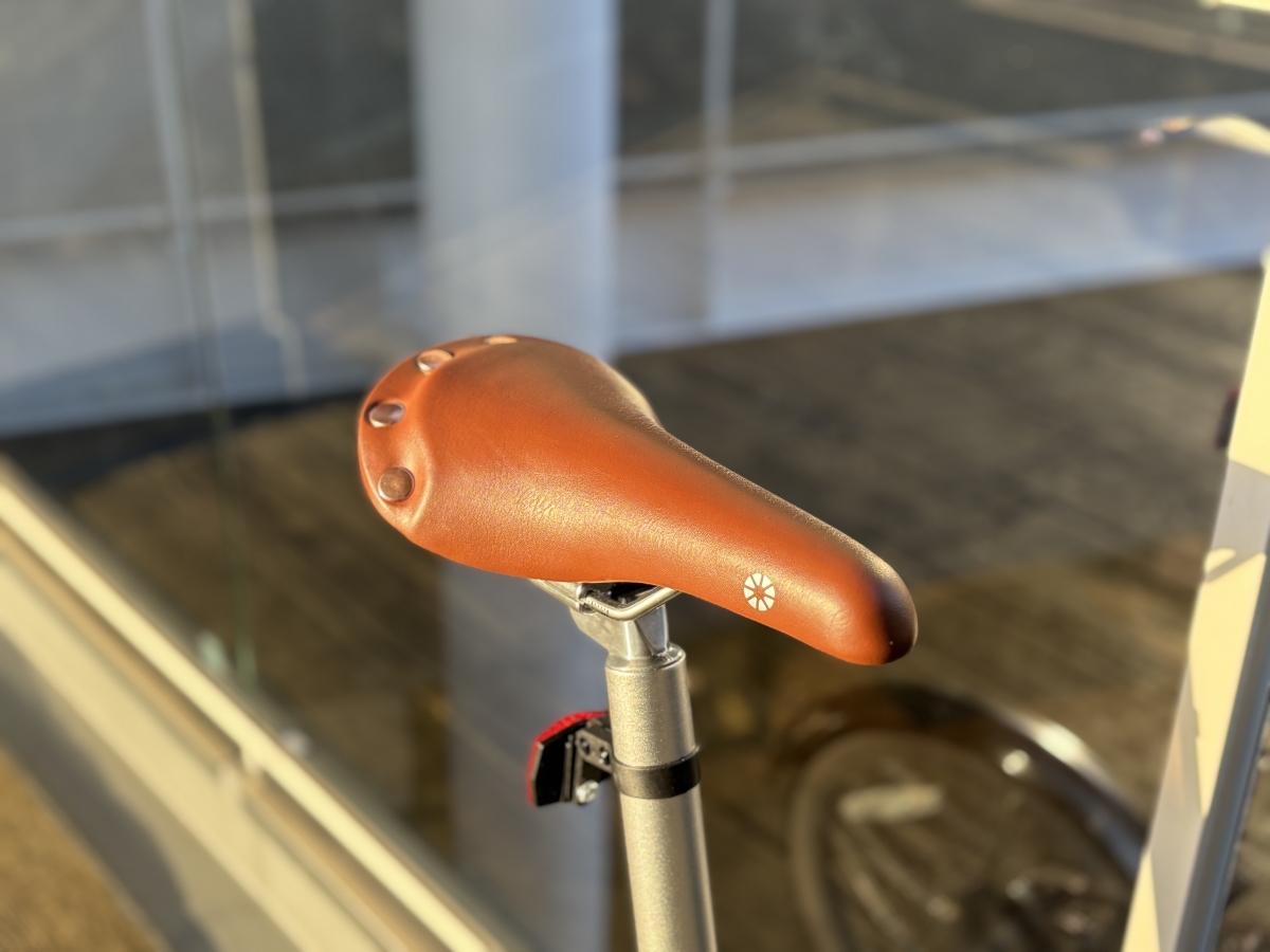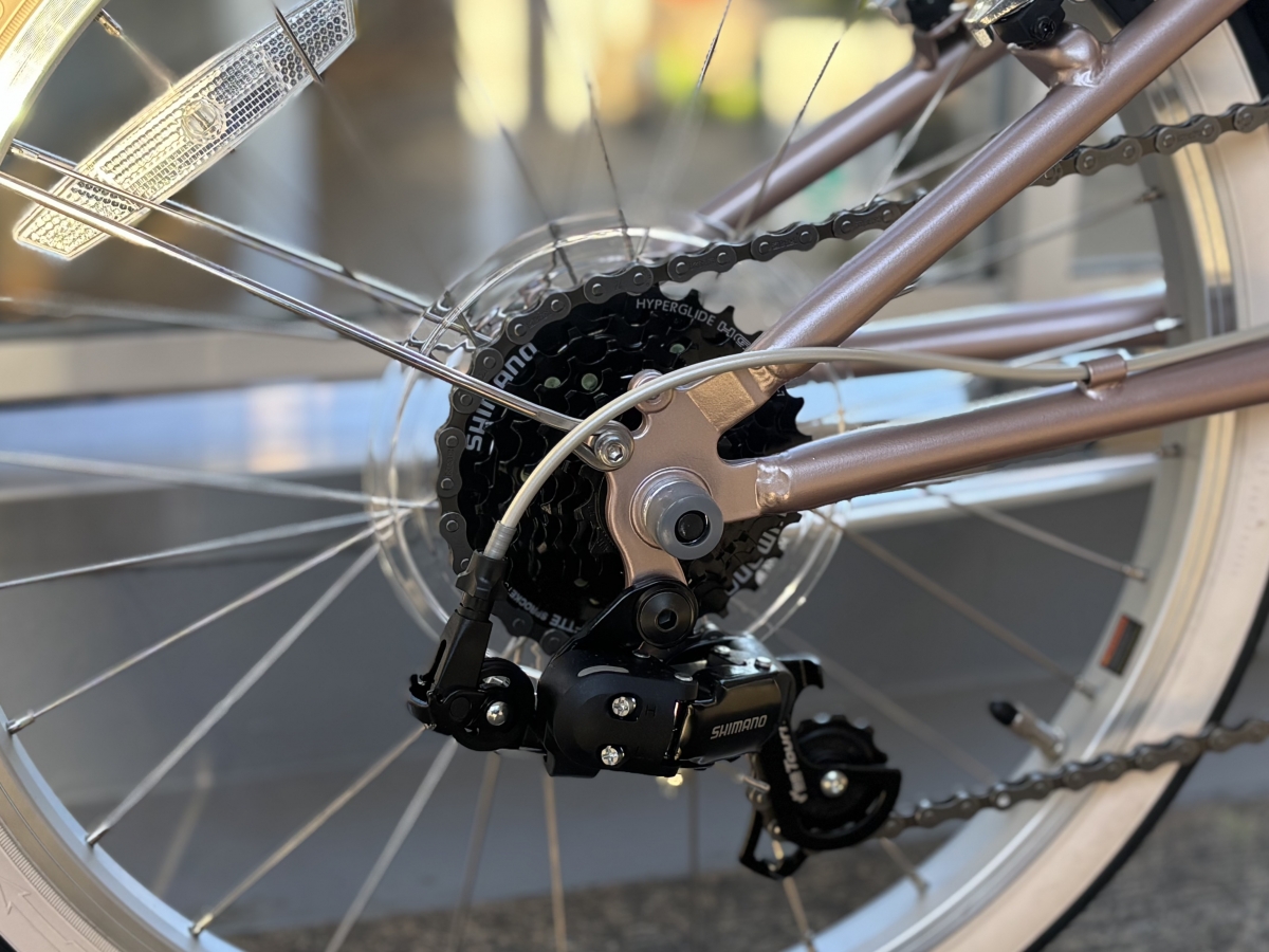 サドルとグリップはピンクに合うブラウン系の色でお洒落に拍車をかけています。