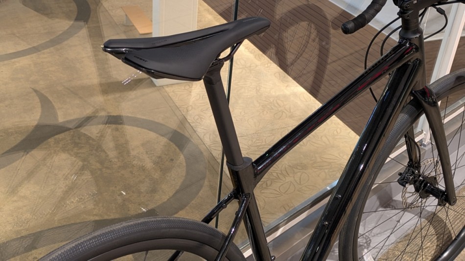 この車体の特徴ともいえるシートポスト。D-FUSEと呼ばれ文字通りD型衝撃をいなして乗り心地を向上させてくれます。またカーボンシートポストのため軽さにも優れ価格以上の走りの軽さを提供してくれます!