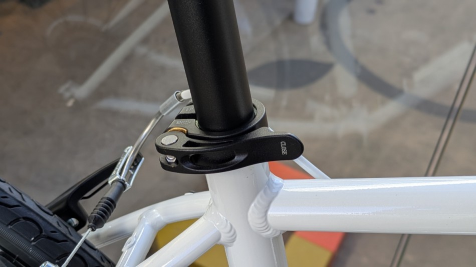 エスケープシリーズのおすすめしたいポイントがここ!一般的なスポーツ自転車は六角レンチを使用して固定するタイプが多く、固定力は高い一方でライトユーザーなどは家に工具が無いと調整が出来ないというデメリットもあります。一方でレバー式であれば固定力は多少落ちますが、手軽にサドル高の調整が出来るので家族内でシェアして使いたいなんて方にも使いやすい仕様になっています!