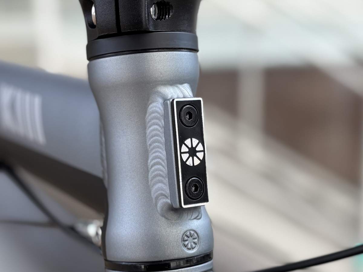 これを外して対応するアダプターを付けるとフロントバスケットを取り付けることも可能です。