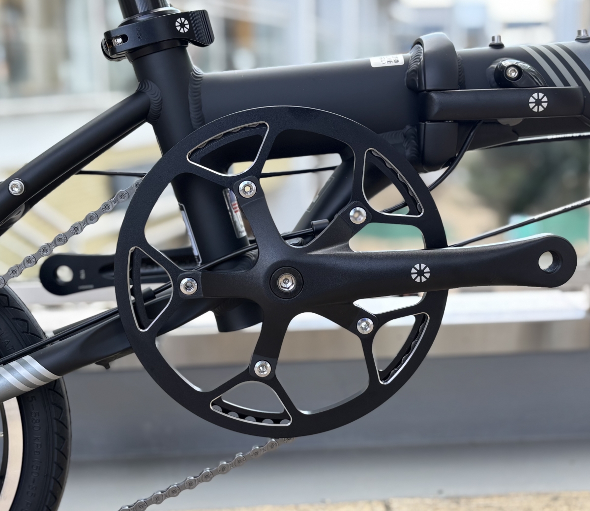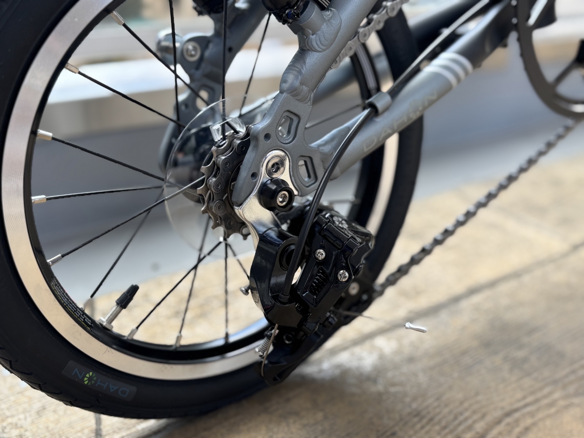 小径車ゆえペダル一回転に対する進む距離が短いのでフロントチェーンリングを大きくすることによってこの車輪径7とは思えないほど走ってくれます。