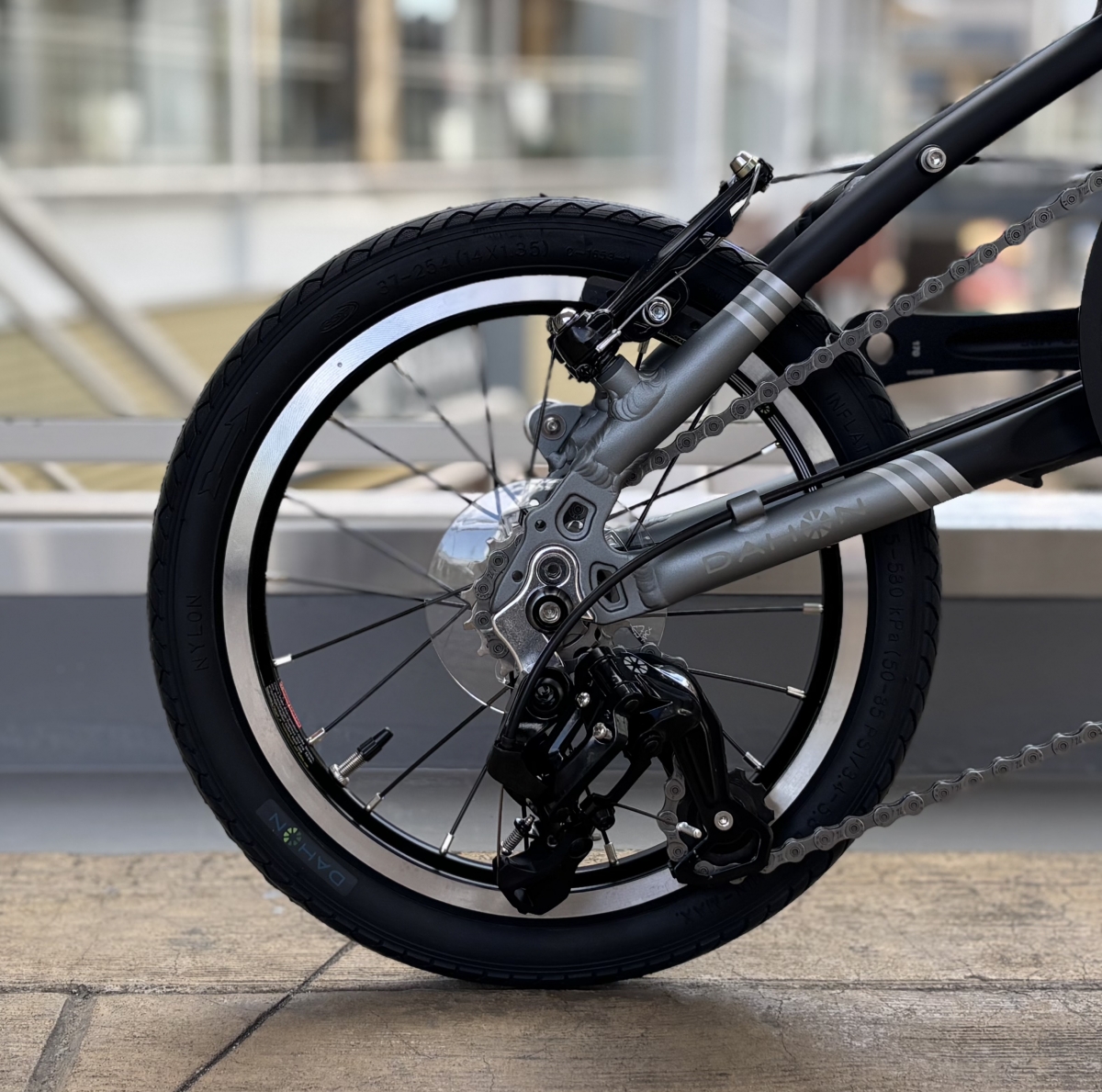 14インチの極小径ホイール(タイヤ)を装着した折り畳み自転車がこのDAHON K3になります。