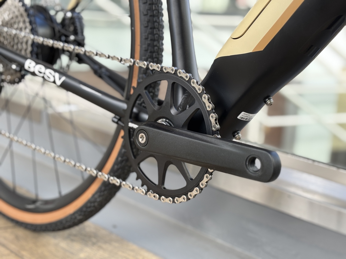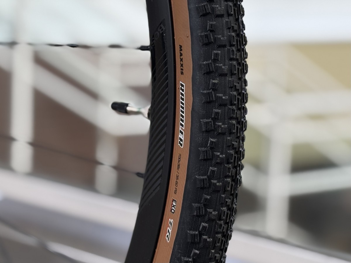 700×38Cのブロックタイヤを装着しオンロードは勿論ある程度のオフロード区間でも走行が可能です。
