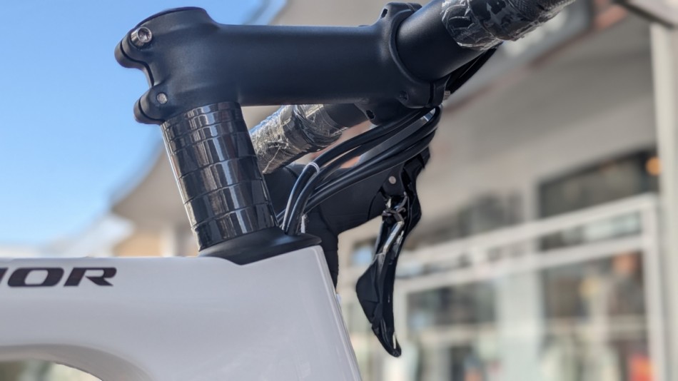 ステム、ハンドルは汎用的な物が付属しており、そのためワイヤー類も半内装に近いものになっています。後々ご自身に合ったハンドルにカスタムするのもいいと思います!