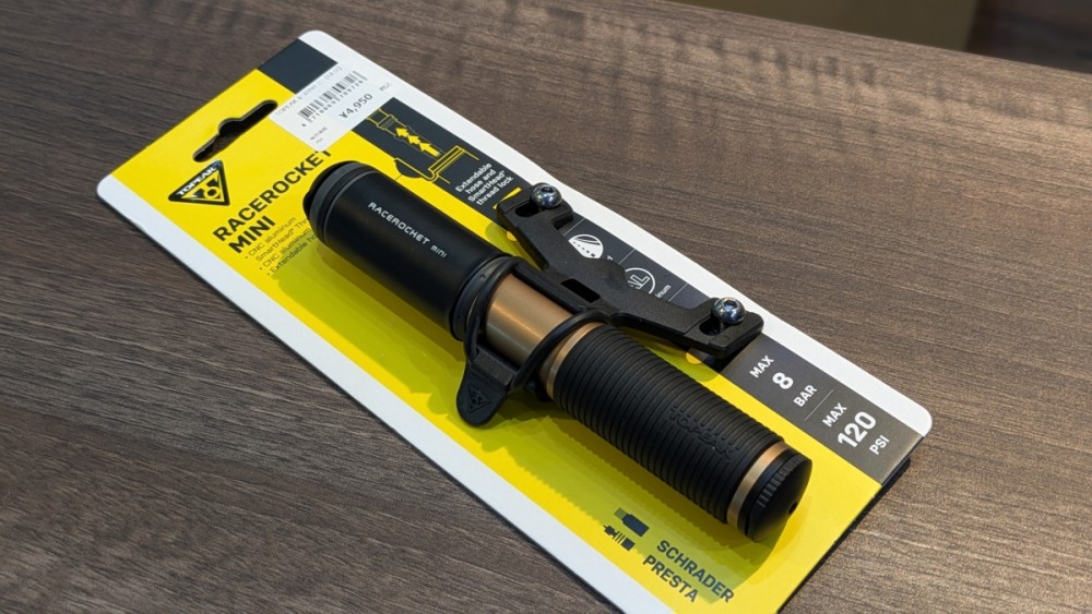 今回入荷したのはトピークから出る携帯ポンプ”RACEROCKET MINI”です!全長16㎝でとても小型で持ち運びがしやすく、ゴールドのカラーはとても高級感溢れる質感になっています!