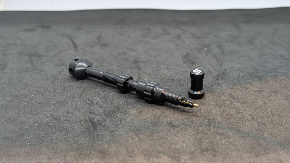 バルブコアはこのように分割する事が出来ます!空気を抜くときにもこのバルブコアを少し緩めることで排出することが出来ます。また工具なしで簡単に取り外しが出来るので、シーラントを入れる時にも作業性が向上しています。