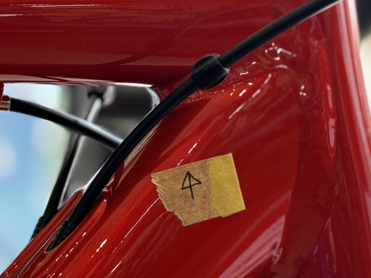 ダウンチューブのヘッド寄りの所に小さく引っ掻き傷があるので気になる方は必ず店舗で実車をご覧ください。