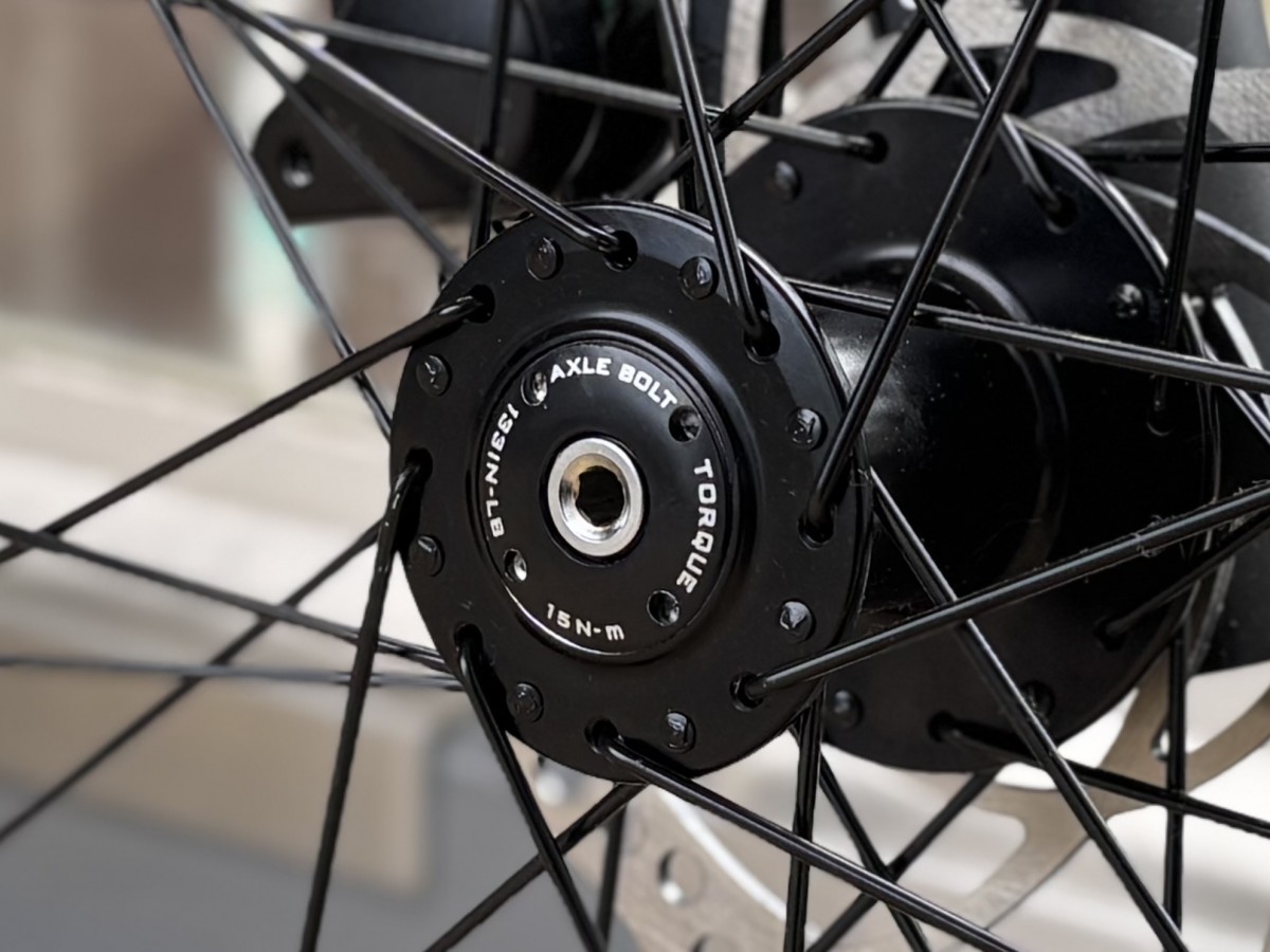 フロントホイールはホイール中央のボルトを緩めると横に外れる仕組みです。