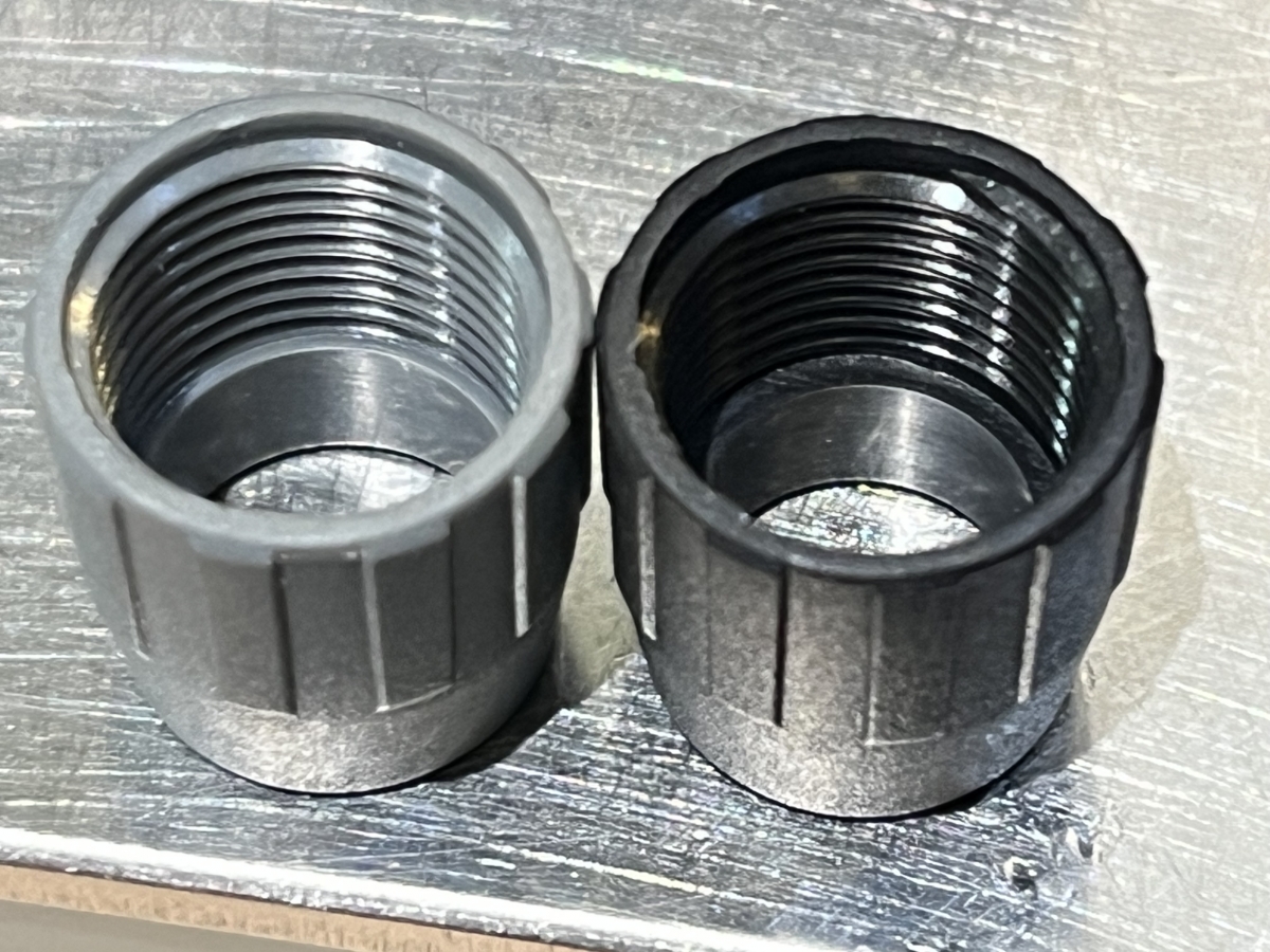 画面左側が黒いピストンがややはみ出ている、バルブ挿入前の状態。