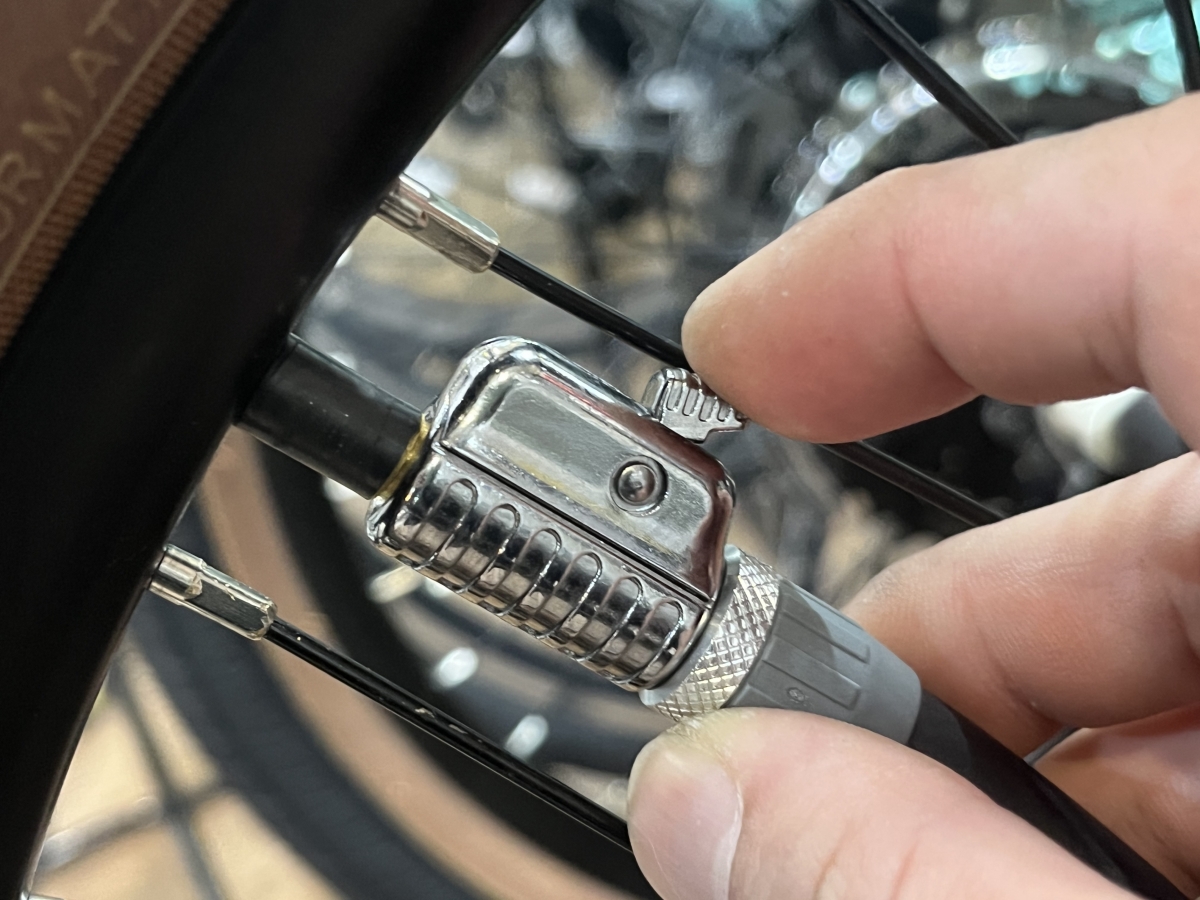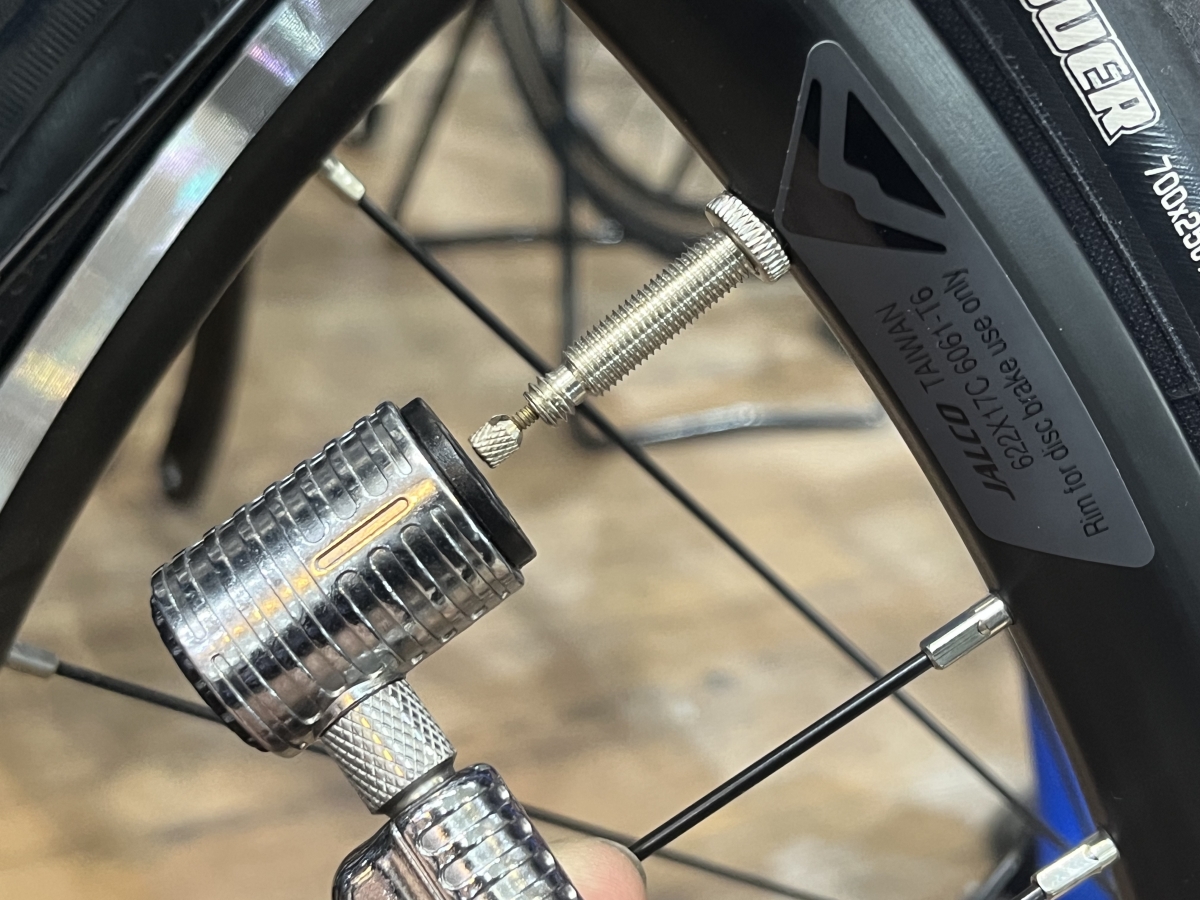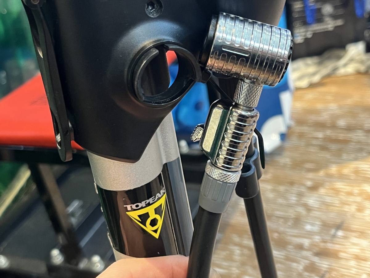 径が小さいホイールはレバー固定タイプのポンプヘッドだとスポークに干渉して上手く使えない事があるのですが、