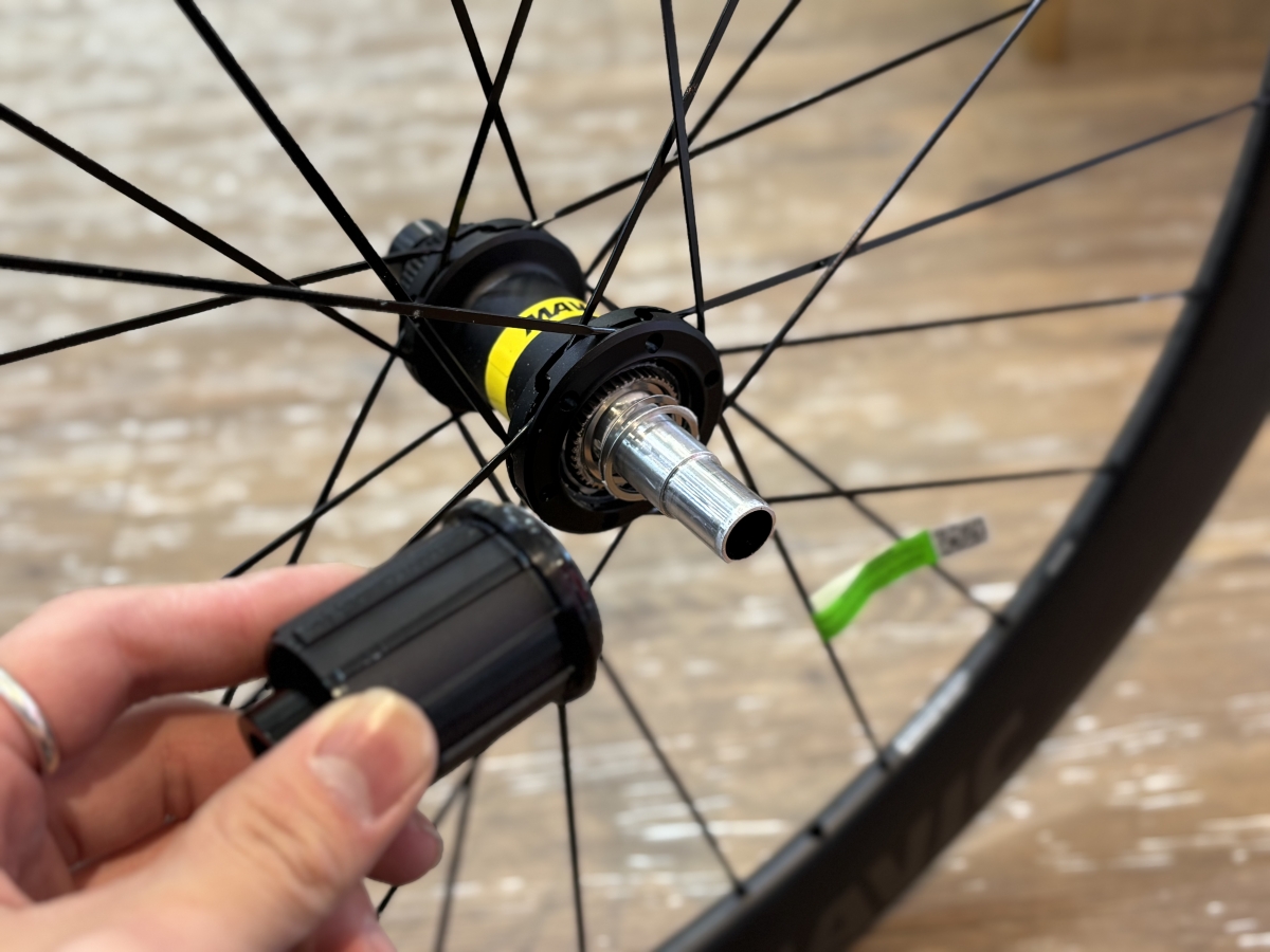 重量もめちゃ重!ってほどでは無いですが、カーボンホイールで考えた場合やや重ためです。