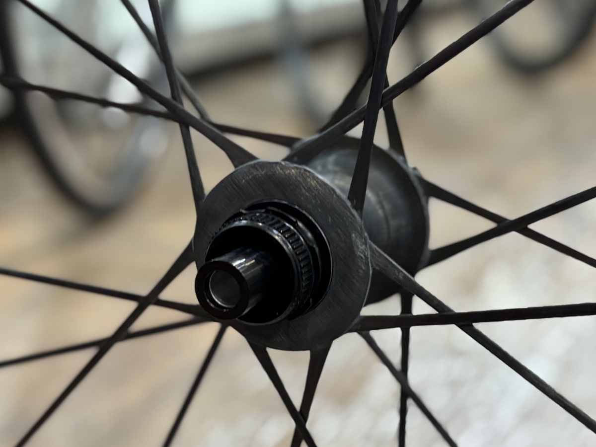 スポークもカーボンになっており、”R2R”と呼ばれリムの片側からもう片側まで、ハブを挟んでフルカーボン製のスポークが1本。