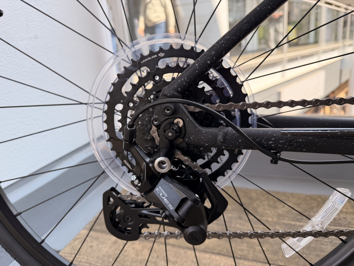 1×9速になっており、チェーンリングが40T、最大ロースプロケットギアが46Tで激坂も安心して登ることが出来るギア比になっています。